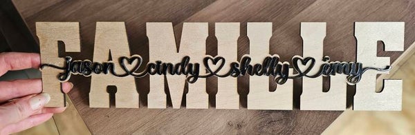 Un design unique en bois et acrylique noir, gravé avec les prénoms de vos proches pour un souvenir inoubliable.