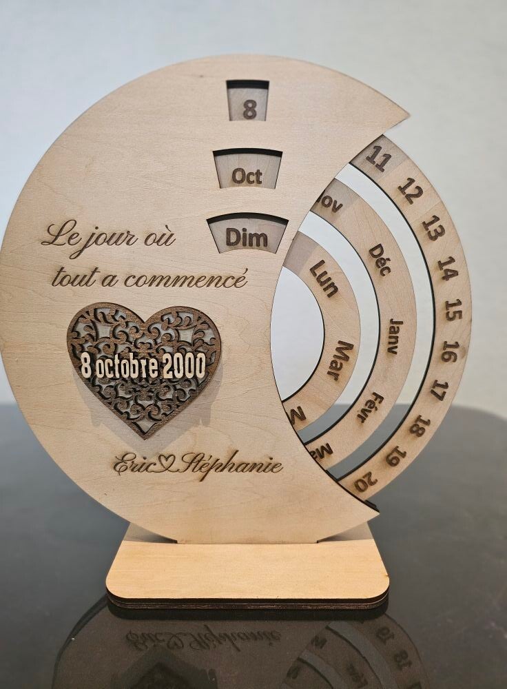 Optez pour un calendrier perpétuel en bois, à la fois pratique et élégant ! Un objet intemporel qui ajoute une touche naturelle et artisanale à votre intérieur. Idéal pour organiser vos journées avec style et originalité !
